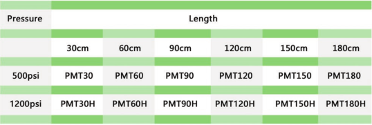 High pressure transparent material ensures the need for large flow Material; PVC/TPU Inner diameter: 0.056(1.44mm) Pressure : 500/ 1200psi. Sterilization: ETO Customized length available