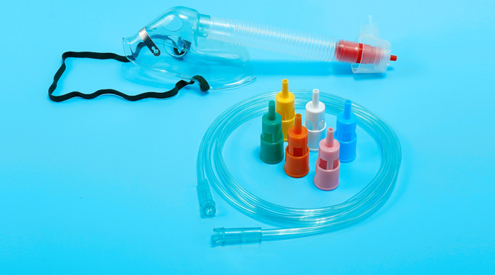 Main structure The oxygen mask is composed of a cover body, a cover body joint, oxygen pipeline, cone head, nose card and elastic belt. It can be divided into ordinary mask and atomizing mask. There are adults, children, with nebulizer, wit